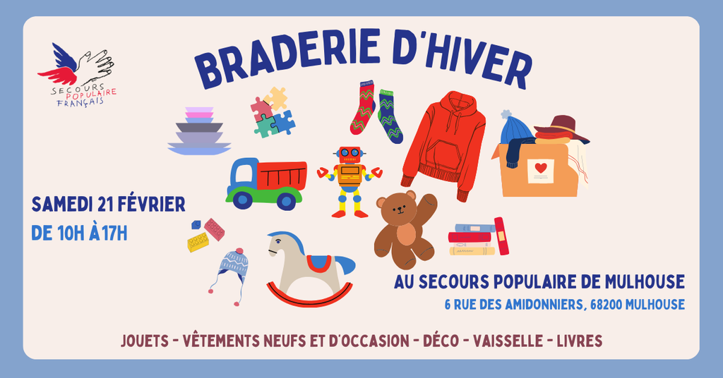 📍Lieu : Au Secours populaire de Mulhouse, 6 rue des amidonniers, 68200 Mulhouse
