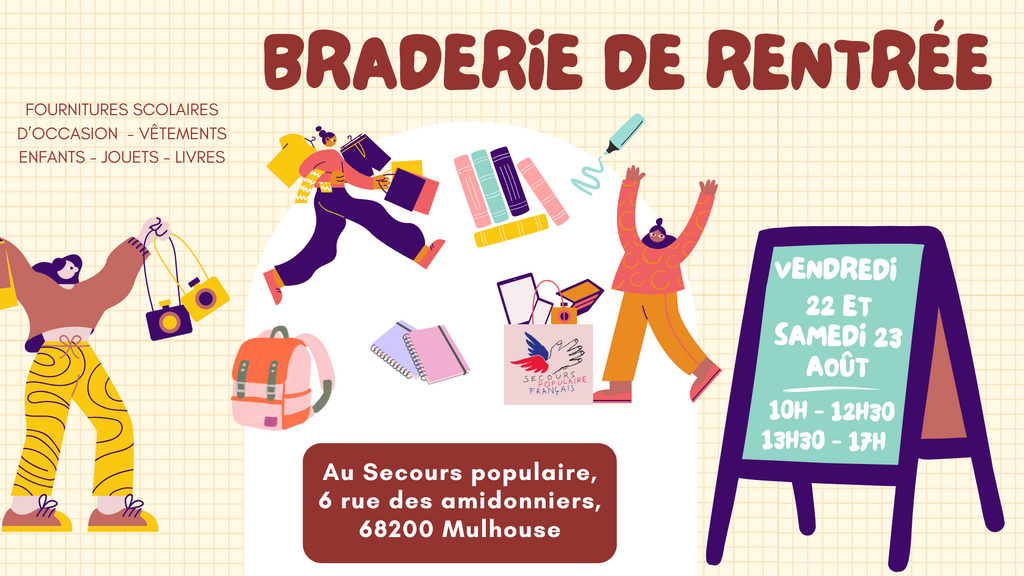 Pour bien préparer la rentrée des classes, le Secours populaire du Haut-Rhin organise une braderie spéciale rentrée scolaire ! 🎒