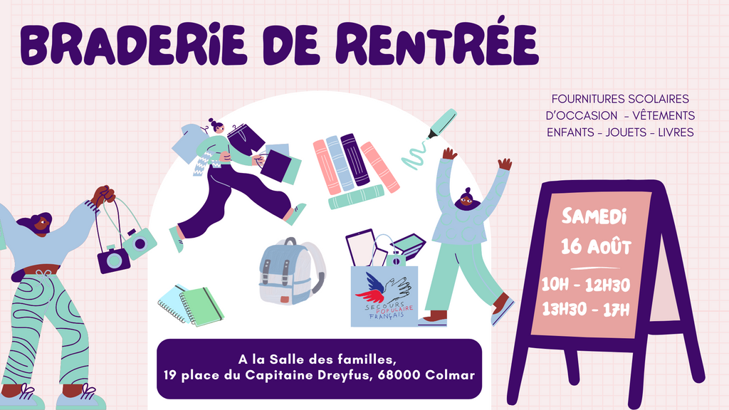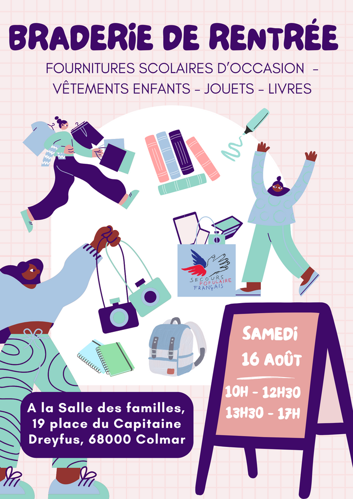 Pour bien préparer la rentrée des classes, le Secours populaire du Haut-Rhin organise une braderie spéciale rentrée scolaire ! 🎒