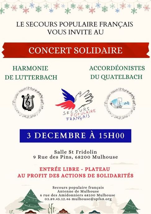 Cette année l’harmonie de Lutterbach et les accordéonistes du Quatelbach réalisent un concert au profit du Secours populaire français du Haut Rhin.