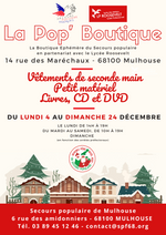 Lundi 4 Décembre ouverture de la Pop’ Boutique à Mulhouse au 14 rue des Maréchaux, la boutique éphémère du Secours populaire français du Haut Rhin en partenariat avec le Lycée des Métiers Roosevelt à Mulhouse