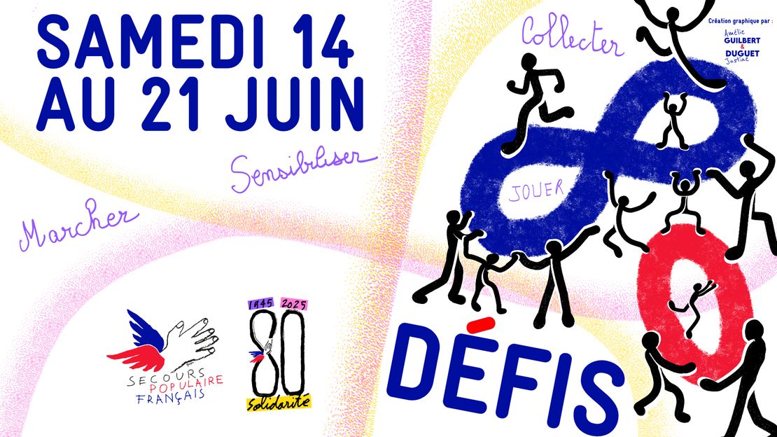 Du 14 au 21 juin 2025, chacun est invité à réaliser un défi solidaire en faveur du Secours populaire. A l'occasion des 80 ans du Secours populaire, c'est tout le réseau solidaire qui passe à l'action partout sur le territoire Sarthois.