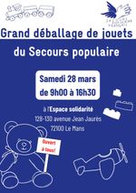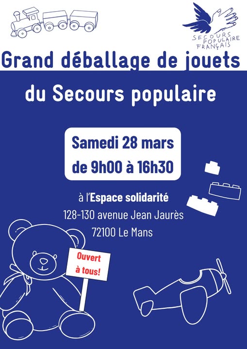 Samedi 28 mars, le Secours populaire organise un grand déballage de jouets ouvert à tous. Contre une participation solidaire, chacun pourra tenter de trouver son bonheur parmi une sélection de jouets d'occasion.