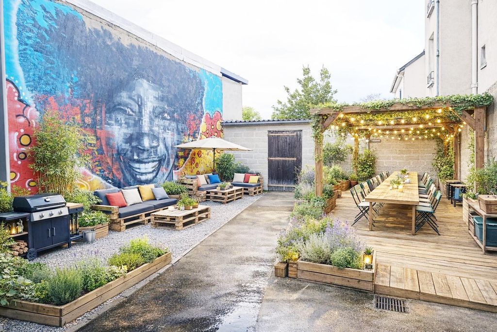 - Le réaménagement de la cour : elle accueillera des carrés potagers, des ateliers de bricolage, une grande table et un barbecue pour des repas conviviaux, des canapés… Le tout réalisé conjointement par les bénévoles et les personnes aidées, dans une logique de partage, d’éducation populaire et de convivialité.