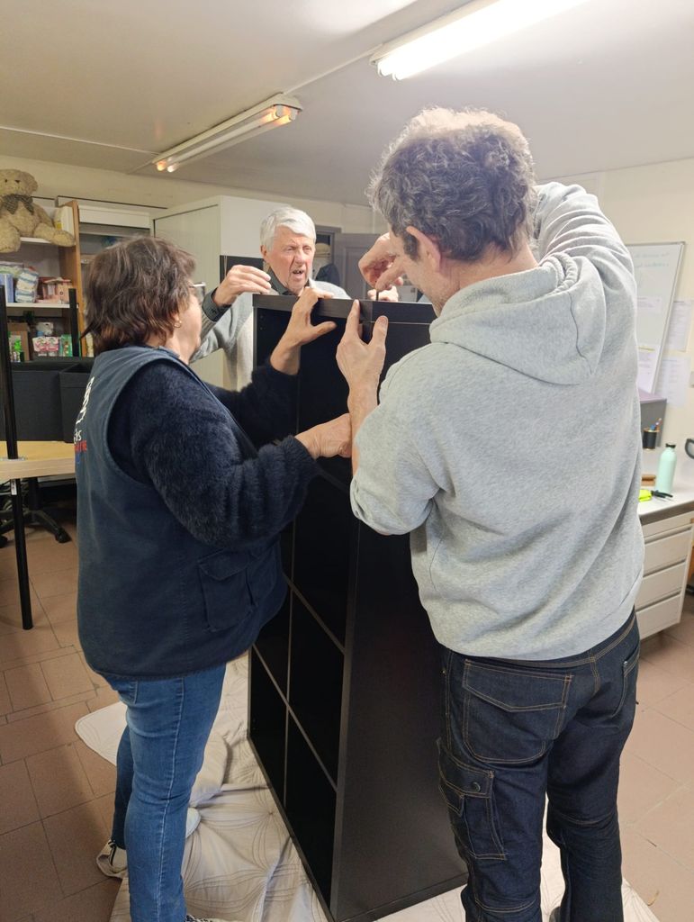 Dans la même démarche, lundi 30 mars, plusieurs bénévoles ont repensé l’organisation de la distribution alimentaire grâce à un don d’étagères et d’un frigo vitré.