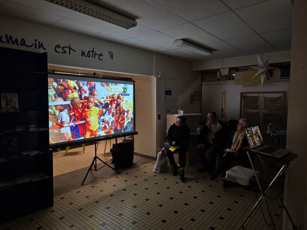 A partir de 19h, les familles sont progressivement rentrées chez elles, laissant la place aux invités suivants. La soirée était consacrée aux personnes qui souhaitaient vivre un moment festif en ce début d’année, pour lutter contre la solitude pouvant être ressentie en cette période de fêtes. Pour commencer, les participants ont visionné un documentaire revenant sur la fête de Noël organisée par le CAEB, partenaire Béninois du Secours populaire. L’occasion de sensibiliser à la solidarité internationale.