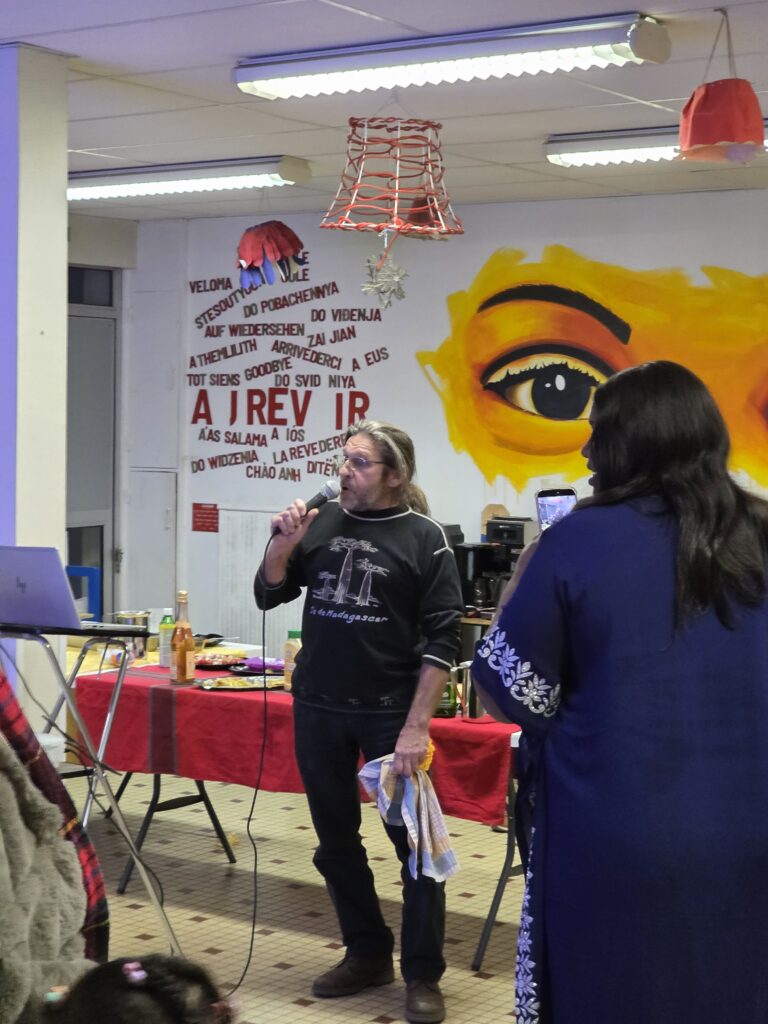 Evistelle, bénévole, a fait la démonstration de ses talents de compteuse en proposant une histoire de sa création. Dans la pénombre de la fin d’après-midi d’hiver, elle a narré l’histoire de « Zoé qui tombe et se relève » : un compte moderne sur la précarité et la force de la solidarité.