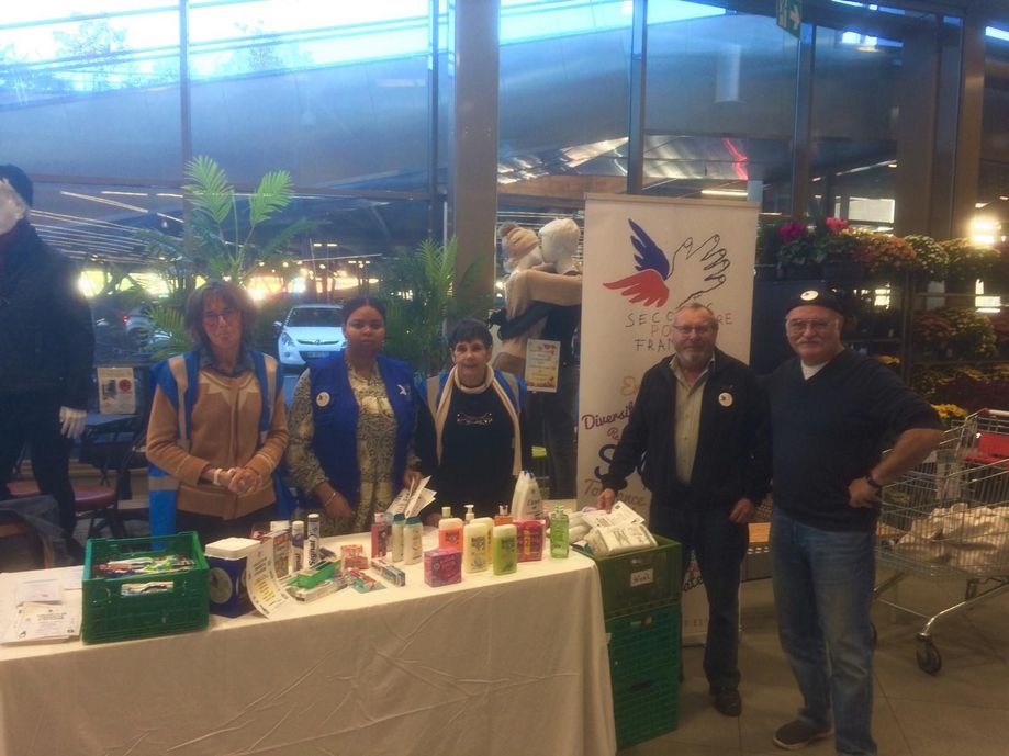 Samedi 26 octobre des bénévoles se sont relayés toute la journée afin de collecter des produits d’hygiène au Super U de La Ravoire