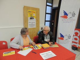 Jeudi 7 février les retraités cheminots acceuillaient un stand du Secours populaire présentant le Don’action.