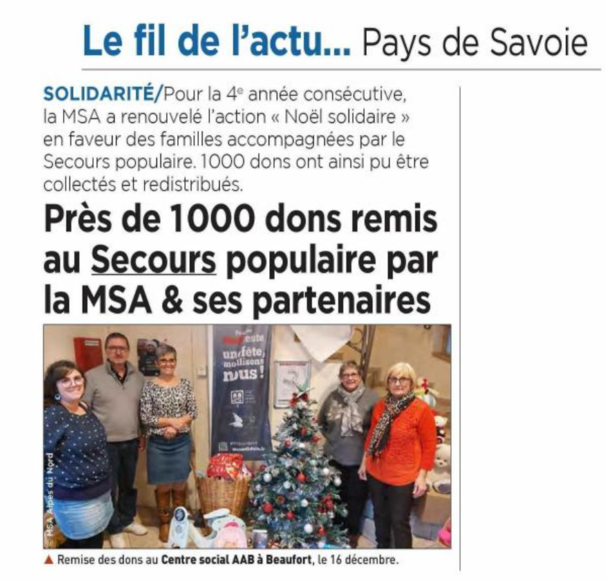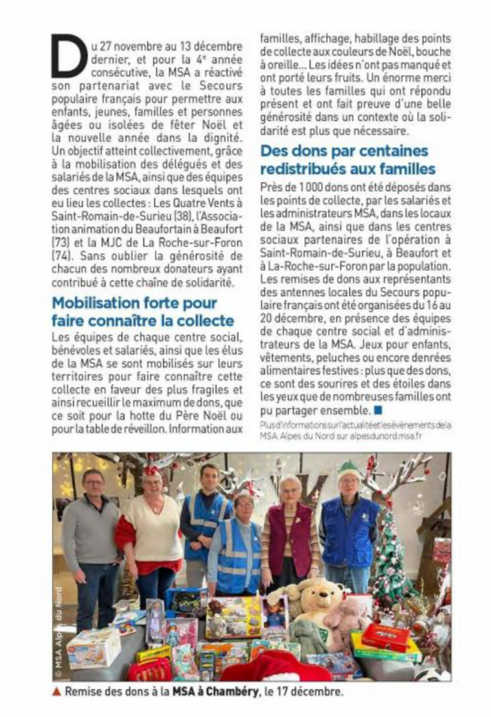 Article publié dans le bimensuel de Terres des Savoie du 09/01/2025