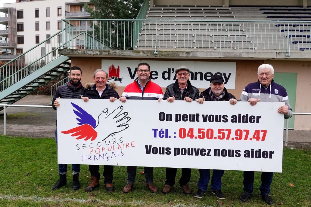 C’est grâce à l’initiative d’un ancien joueur de rugby et bénévole au Secours populaire depuis de nombreuses années, Pierre Gay, que le partenariat entre le Secours populaire de Haute-Savoie et l’Union Sportive Annecy Rugby a pu voir le jour ! Un panneau d’affichage aux couleurs du Secours populaire (voir photo) a été gracieusement donné et est désormais affiché en permanence au stade de rugby d’Annecy.