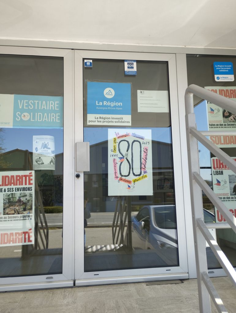 Entrée Vestiaire solidaireSolidaribusNotre salle de réunionEntrée principale Siège Secours populaire Haute-SavoieCamion comité du Chablais