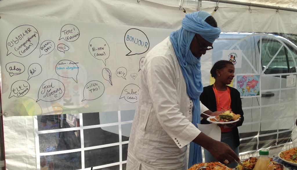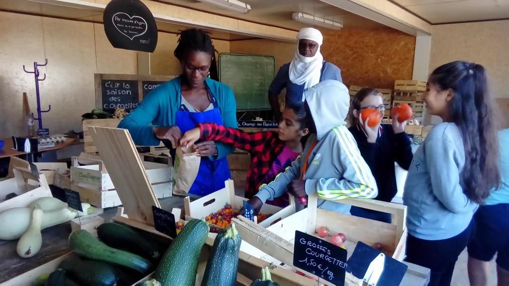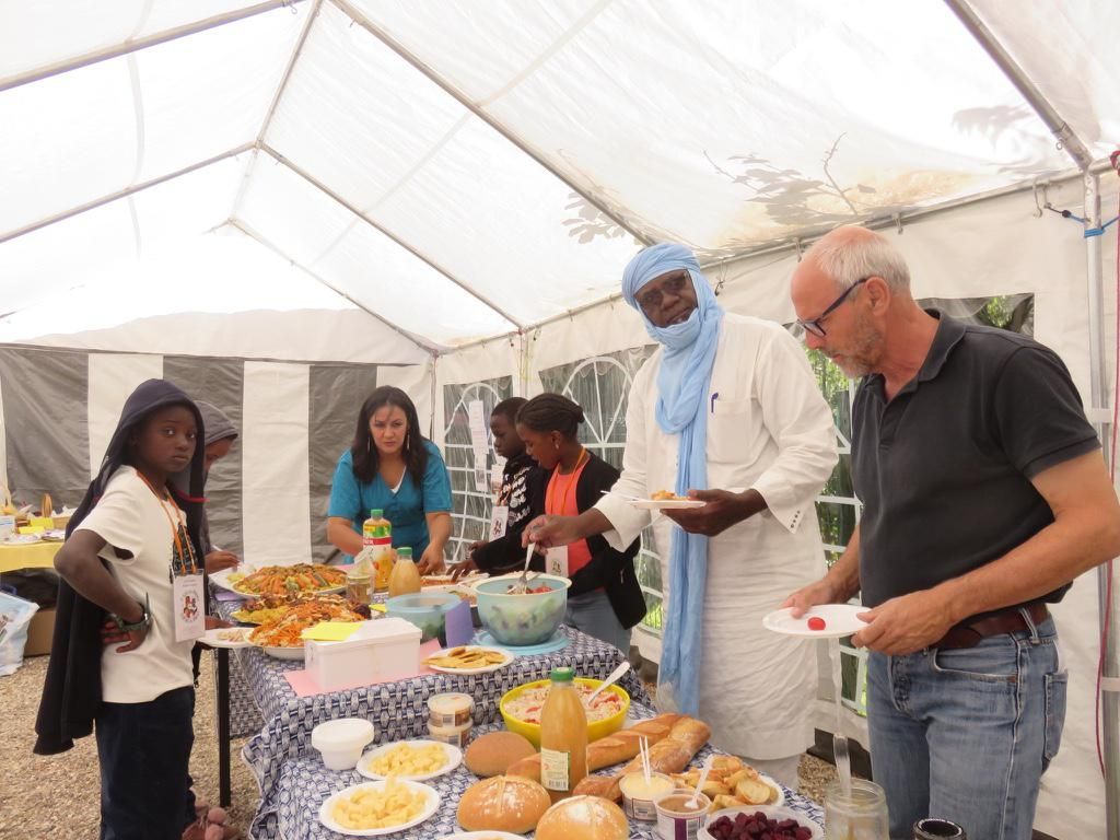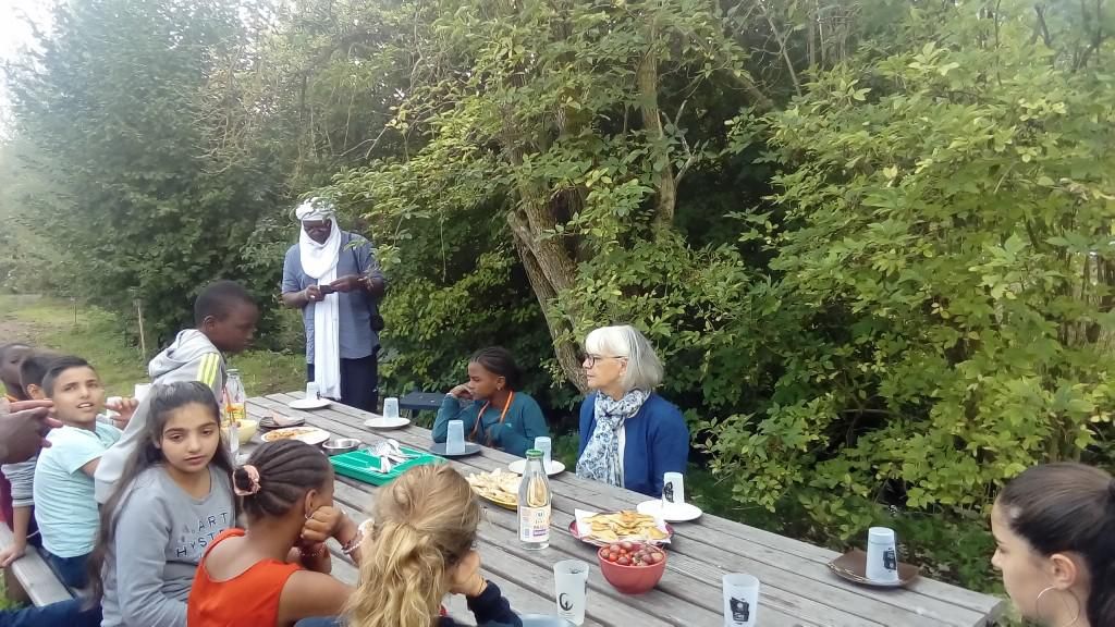 Le dimanche avant de partir pour Orly, nous avons partagé un « Repas du Monde » confectionné par les familles des CDM, par les animateurs, les bénévoles. On pouvait goûter à quelques spécialités culinaires du Sénégal, d’Algérie, du Maroc, d’Afghanistan, de Palestine, de France.et aux fruits des producteurs locaux.