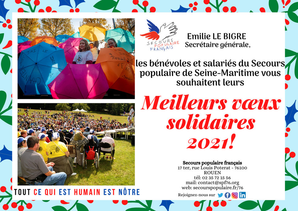 Merci à vous tous pour toutes les actions que vous accomplissez au quotidien, pour votre fidélité, pour votre courage et votre investissement. Nous avons su ensemble traverser cette année 2020 en réinventant nos pratiques, en créant de nouvelles formes de solidarité.