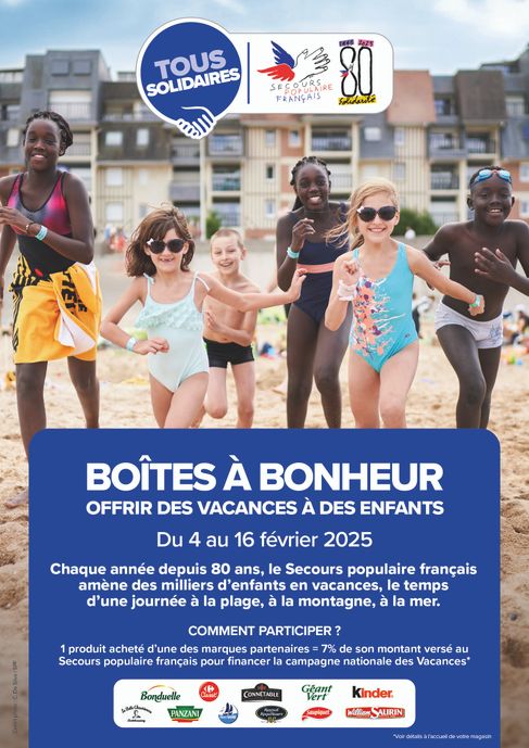 C’est le principe de l’opération Boîtes à Bonheur ! Pendant deux semaines, lorsque vous achetez des produits de marques partenaires dans un magasin du groupe Carrefour, 7% du prix sont reversés au Secours populaire pour financer la Journée des oubliés des vacances.