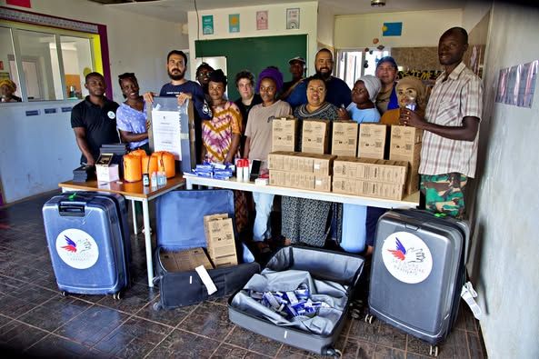 – La distribution de matériel essentiel : pompes à eau, pastilles de purification, antennes satellites, batteries solaires…