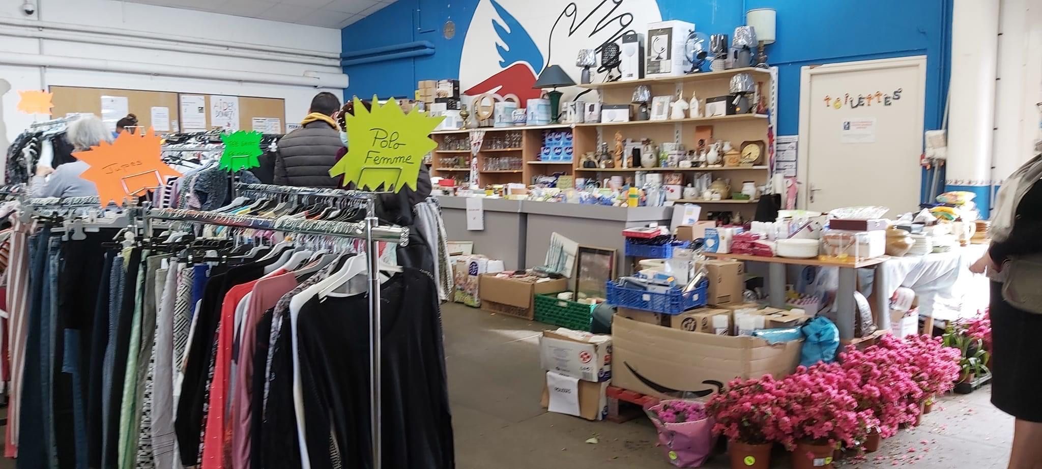 Vente de vêtements neufs et occasion, bazar, livres, fleurs, articles de fêtes et anniversaires, papeterie, lampes, articles équipement auto.
