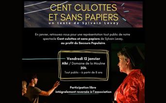 La collectif d’artistes La Sotie offre une reprĂ©sentation tout public de son dernier spectacle Cent culottes et sans papiers au profit du Secours populaire d’Albi.