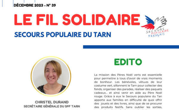 Le numéro 39 du Fil solidaire, journal des bénévoles du Tarn, de décembre 2024, fraîchement sorti des presse, est dans tous les bons kiosques 😀.