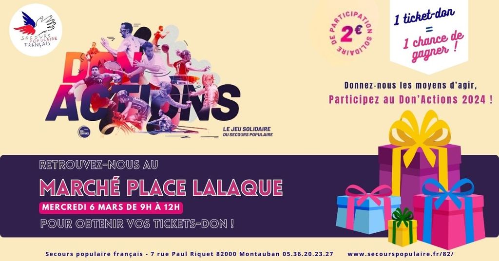 Retrouvez-nous au marché Place Lalaque à Montauban le Mercredi 6 Mars de 9h à 12h afin d’obtenir vos tickets-don auprès de nos bénévoles.