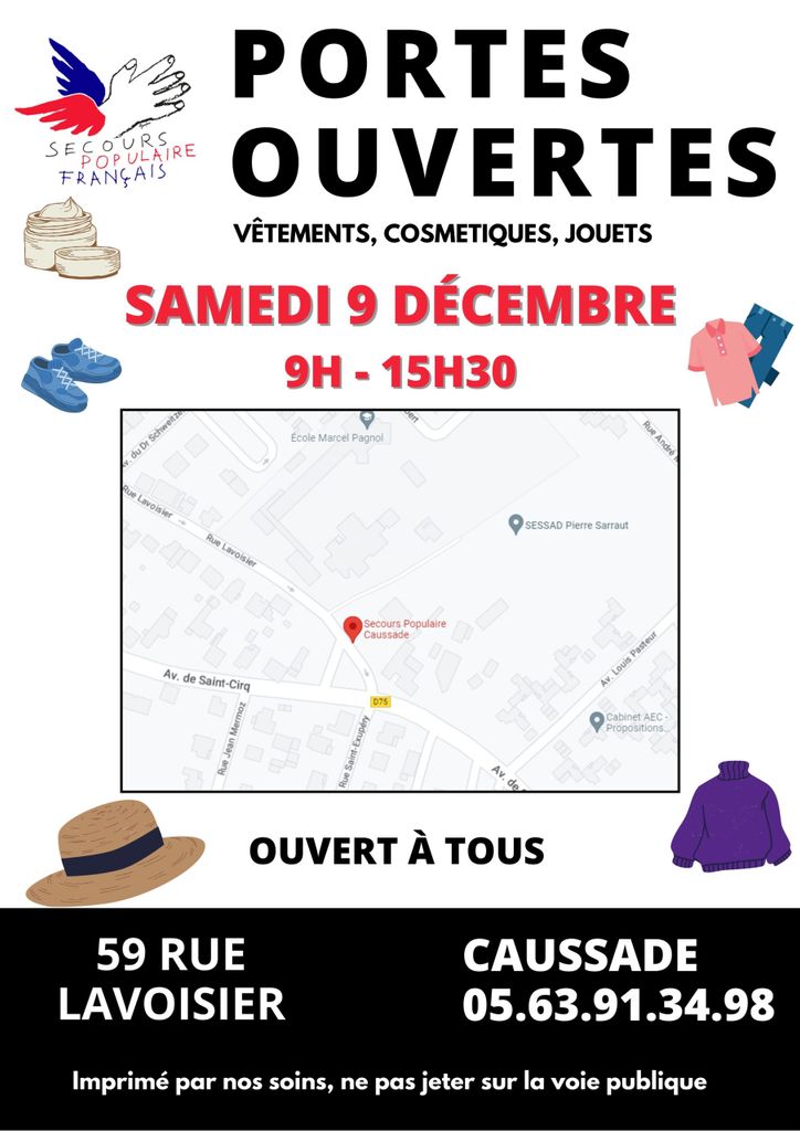 Nous vous invitons aux Portes Ouvertes de l’antenne de Caussade qui auront lieu le samedi 9 décembre 2023 de 9h à 15h30. Cet événement se tiendra au 59 rue Lavoisier, 82300 Caussade.