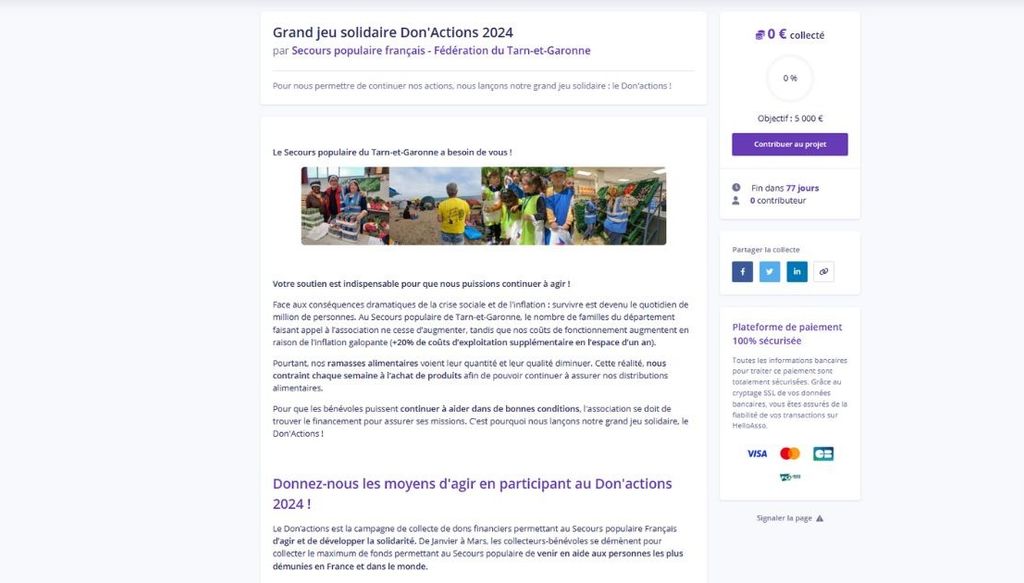 Vous pouvez participer au Don’Actions 2024 directement depuis chez vous grâce à notre plateforme HelloAsso.