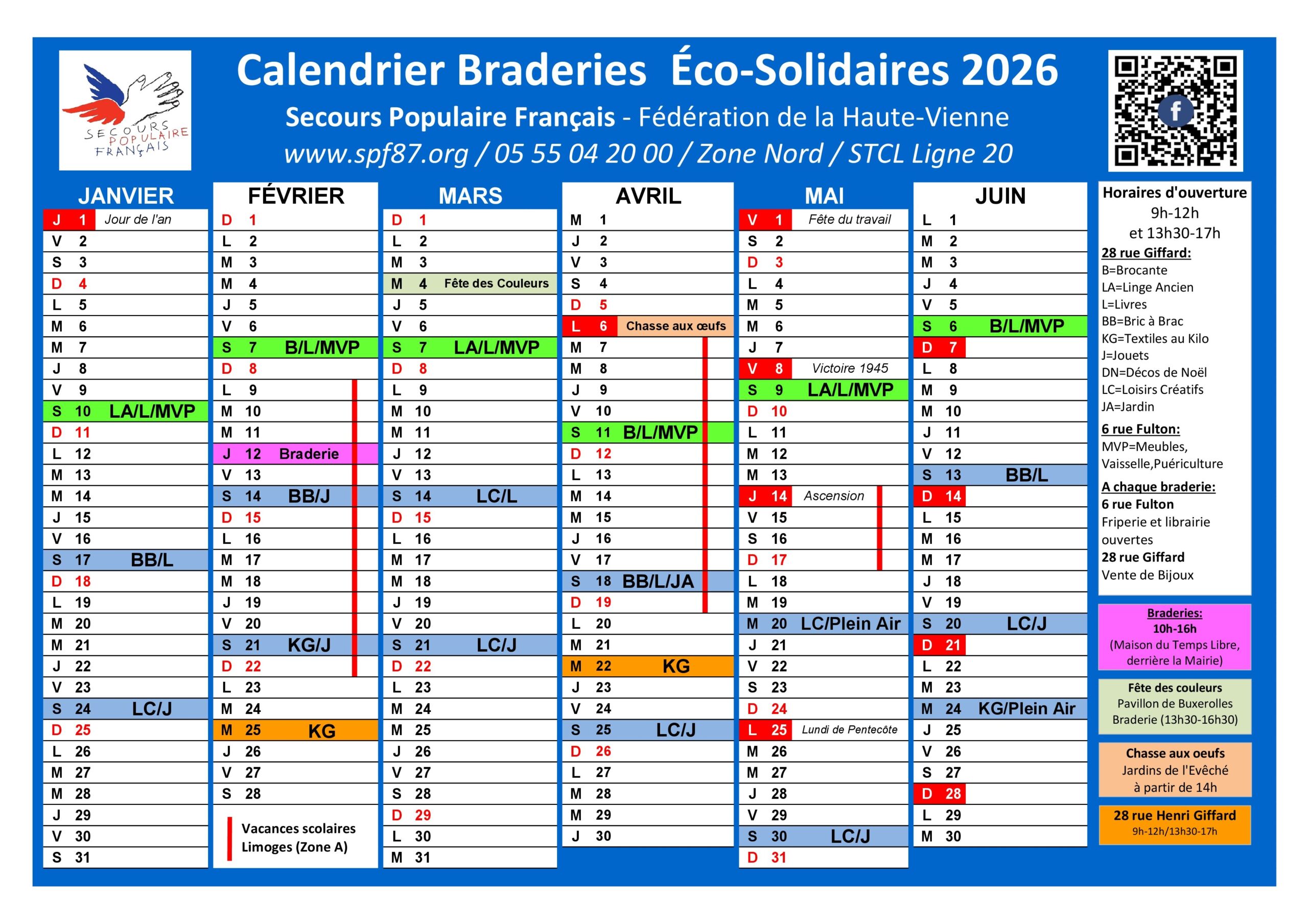 Calendrier des Braderies solidaires 2026