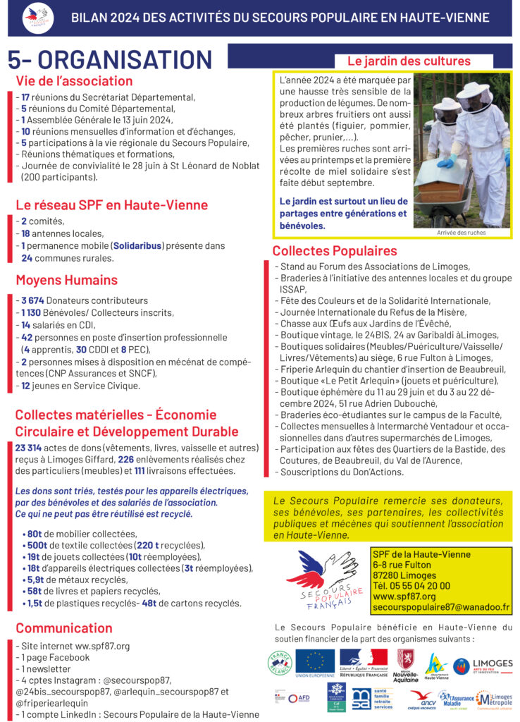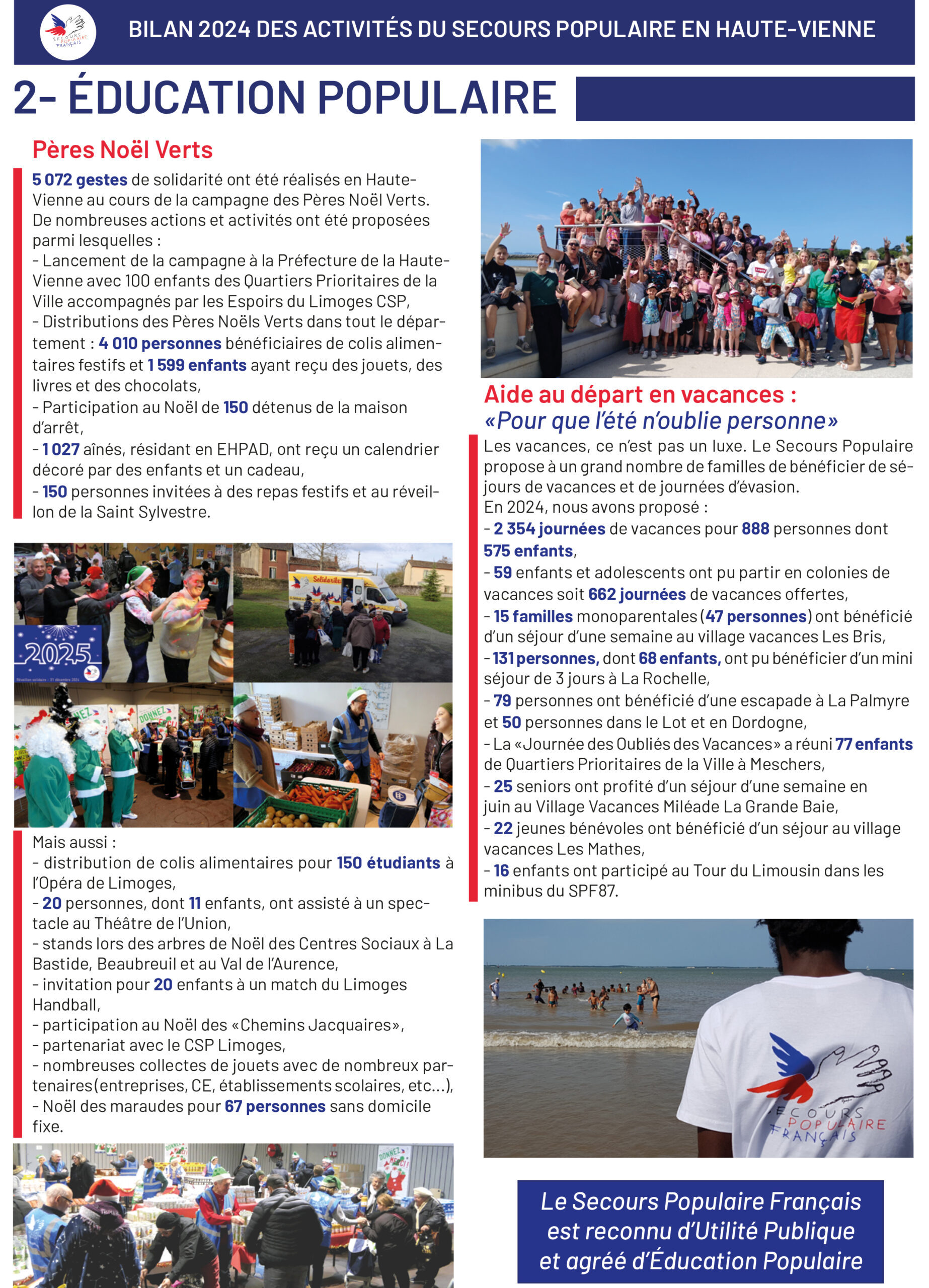 Vous pouvez télécharger notre bilan des activités 2024 du Secours Populaire de la Haute-Vienne ici