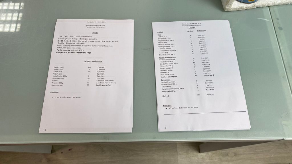 En fonction des stock de produits disponibles, des dates de fraîcheur, et des habitudes des personnes aidées, des listes de produits à distribuer par portion sont établies dans les différentes catégories.