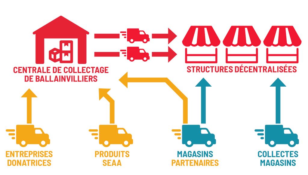 L’approvisionnement en provenance de la centrale de collectage départementale est complété localement des dons de commerçants locaux et les collectes organisées régulièrement aux sorties des supermarchés d’Orsay et des communes voisines.
