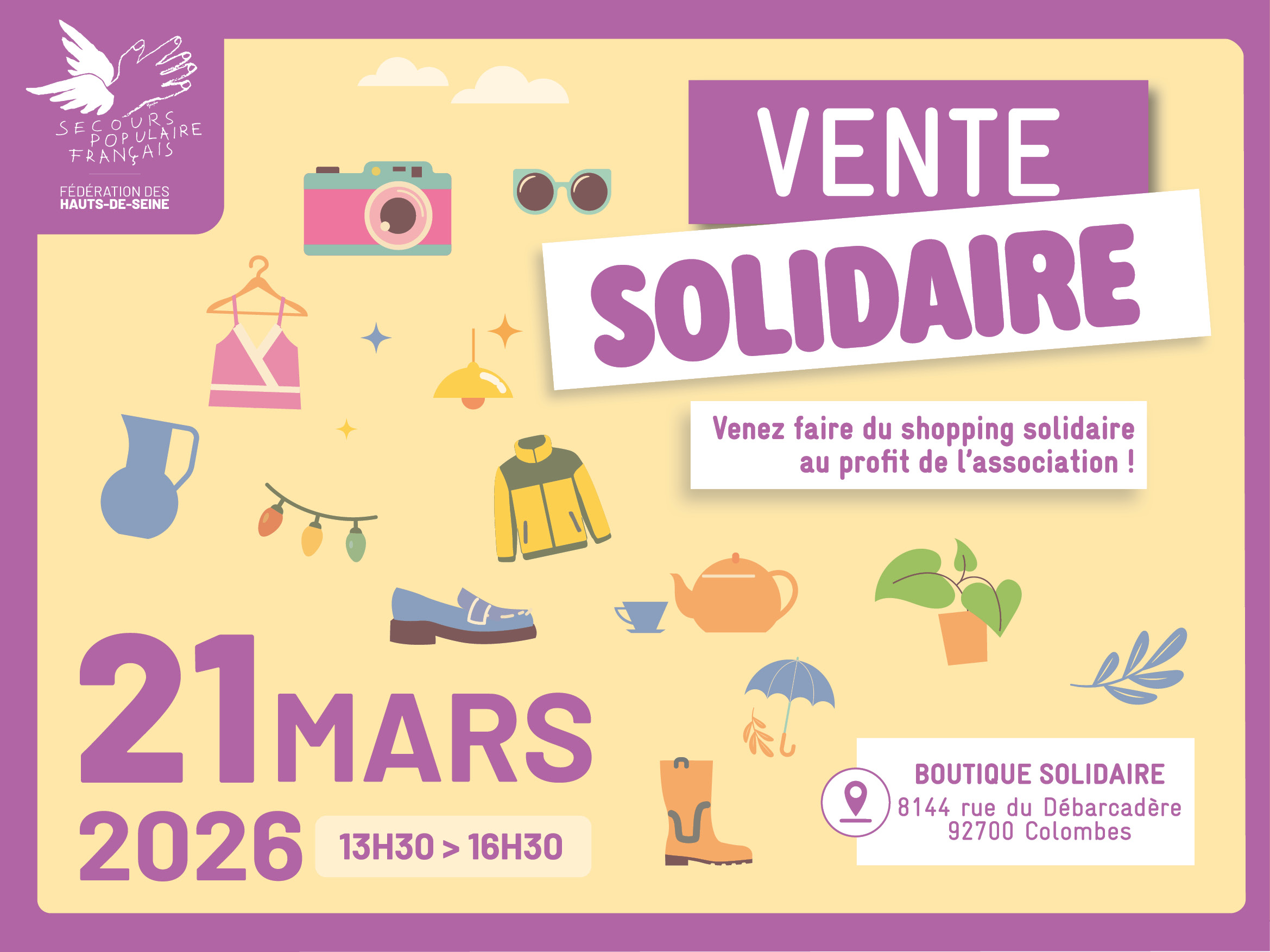 Le samedi 21 mars prochain se tiendra une vente à la Boutique Solidaire du Secours populaire des Hauts-de-Seine !