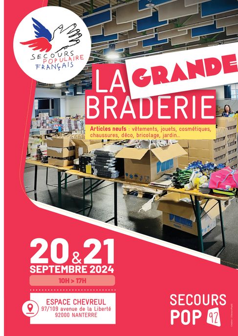 Le Secours populaire des Hauts-de-Seine organise sa Grande Braderie, d’automne, les vendredi 20 et samedi 21 septembre 2024 de 10h à 16h à l’Espace Chevreul de Nanterre. Cet événement solidaire est ouvert à tout public.