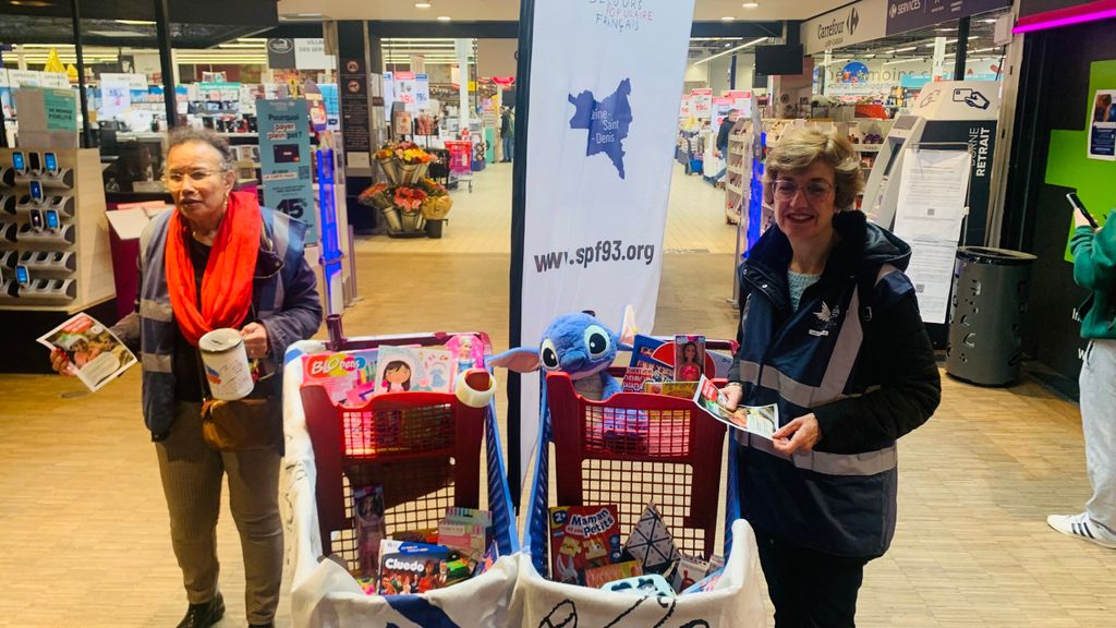 Dès 10 heures ce samedi 15 novembre, les bénévoles ont commencé à tracter et à solliciter les clients du Carrefour de Livry-Gargan pour les inviter à choisir des cadeaux à déposer à leur sortie dans les caddies du SPF. Lors de cette collecte, nous avons eu la belle surprise d’un client qui s’est fait accompagner par deux membres de l’équipe pour choisir elles-mêmes dans les rayons. A la caisse c’est un don de près de 180 euros que ce client a réglé directement. Au delà de ce don exceptionnel les clients de Carrefour ont été très généreux et nous avons ainsi rempli 5 caddies de jeux, jouets et livres neufs.