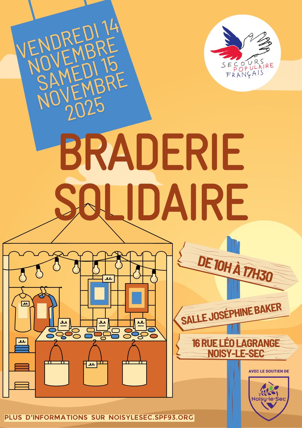Braderie solidaire du Secours Populaire les vendredi 14 et samedi 15 novembre de 10h00 à 17h30.