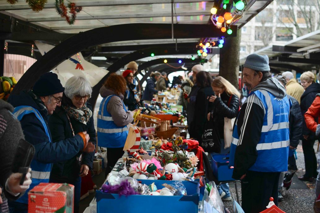 Vin chaud, restauration, objets de décoration de Noël à petits prix, jouets et toujours, la collecte pour la solidarité.