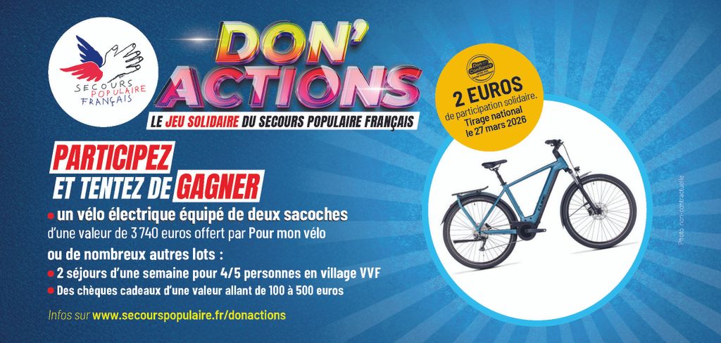 De nombreux lots sont à gagner (vélo électrique, séjours, chèques cadeaux…), avec un tirage départemental le 25 mars et un tirage national le 27 mars.