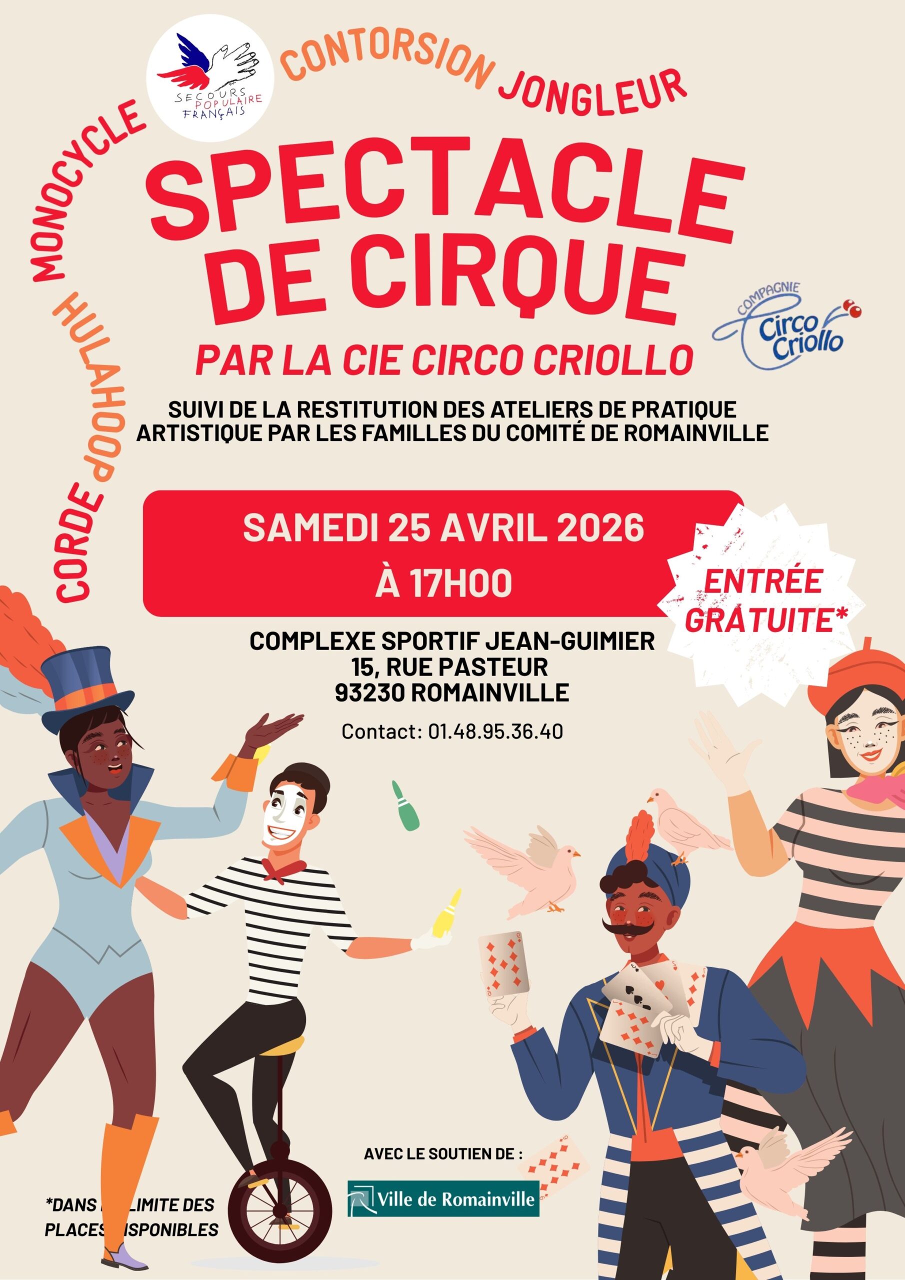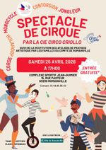 17h : spectacle de la Cie Criollo (environ 45 minutes), avec des numéros variés (jonglage, contorsion, monocycle, hula hoop, etc.)