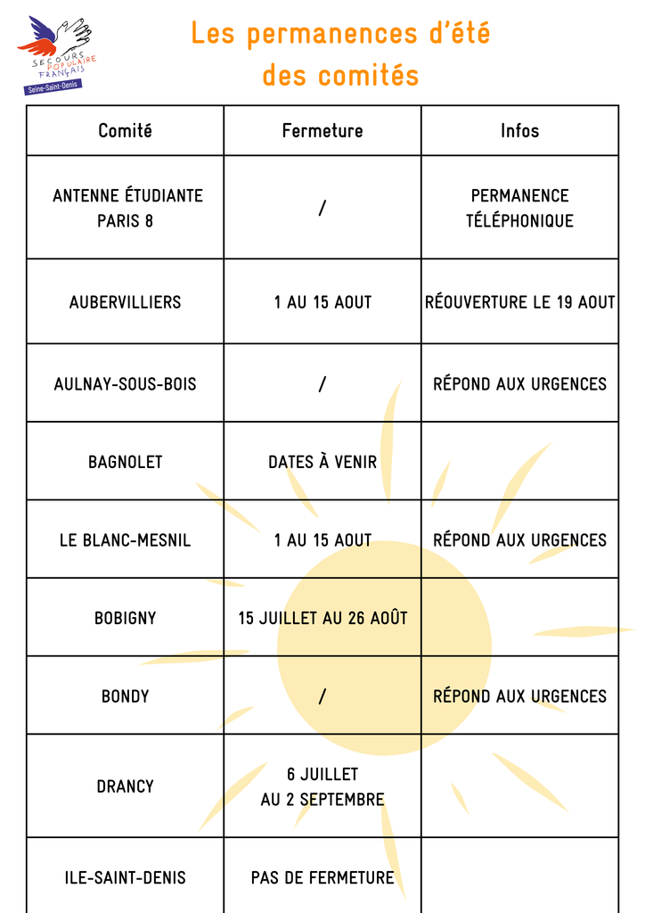 En cette période estivale certains comités suspendent leurs actions le temps de quelques semaines, découvrez les dates de 2024
