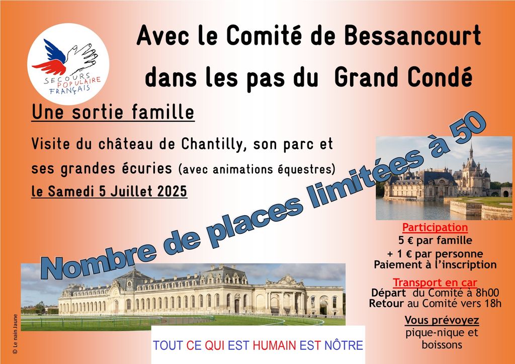 Le Comité de Bessancourt vous propose une « sortie famille » le samedi 5 juillet à Chantilly