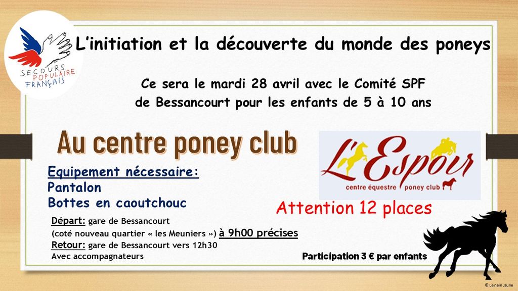 Lors de ces vacances de Pâques le Comité du Secours populaire accompagne les jeunes enfants sur les poneys de l’Espoir