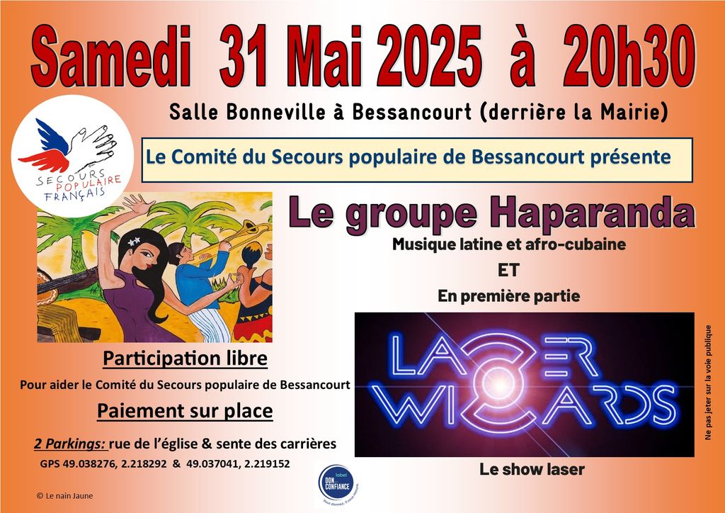 Soirée festive du Comité de Bessancourt avec le groupe Haparanda (musique latine et afro-cubaine) et le show de Laser Wizard