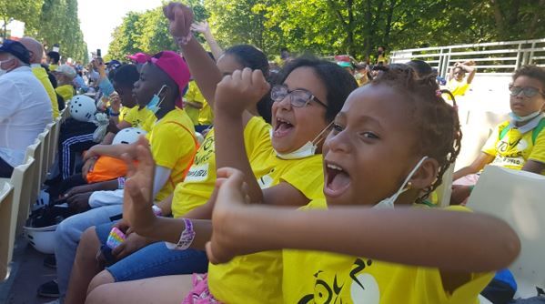 Des enfants, dont 13 du Val-d’Oise ont été invités par le SPF à l’arrivée du Tour de France