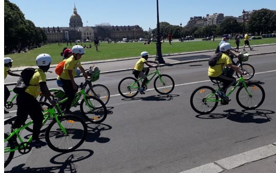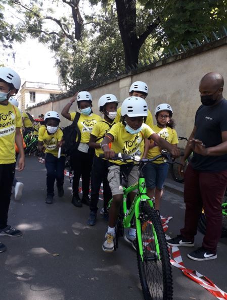 Grâce au Secours populaire français et avec l’aide de partenaires du Tour de France (Amaury Sport Organisation, Leclerc, Velib et fondation d’entreprise FDJ), ils ont pu faire un tour d’honneur à vélo sur le parcours de l’arrivée du Tour de France. Ils ont ainsi parcouru 6,8 km, depuis les Invalides puis montant et descendant les Champs-Elysées de l’arc de Triomphe à la Concorde.