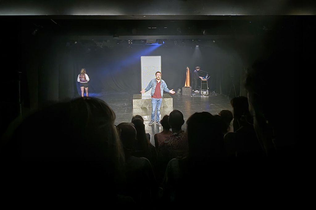 jeunes découvrent à leur tour le In, en assistant à une représentation de La Distance, une création de Tiago Rodrigues, directeur du Festival, qui se joue à