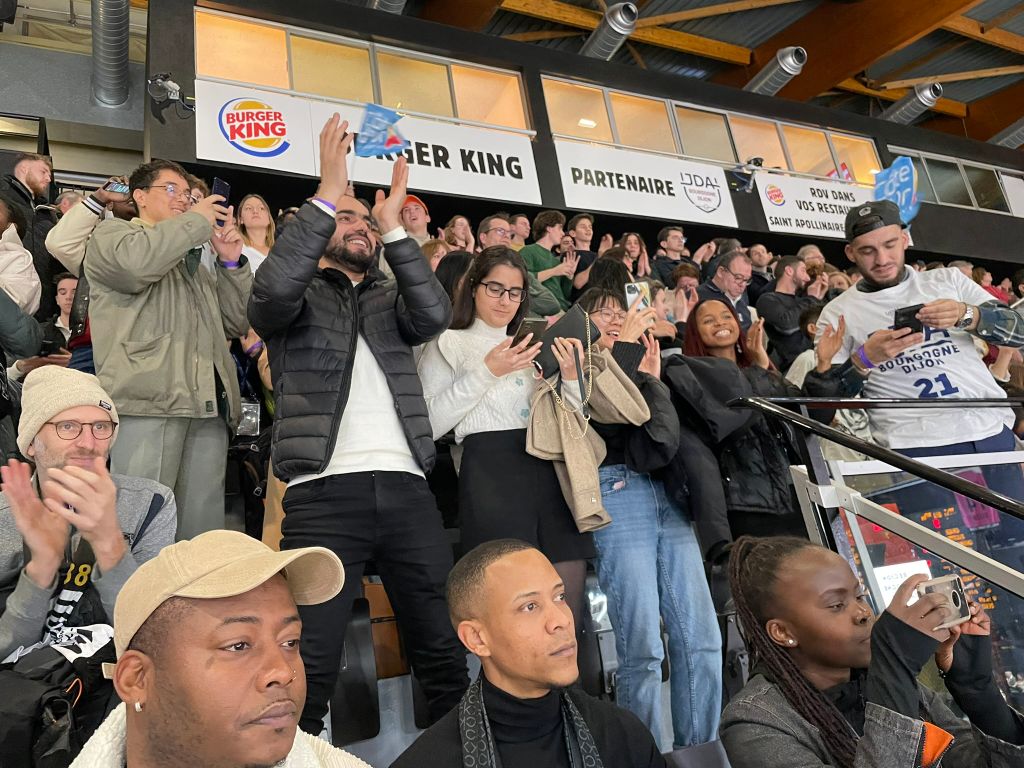 Mayerly et les jeunes qui l’entourent dans la chaude ambiance du Palais des sports font partie de la trentaine d’étudiants en difficulté invités à assister au match par la fédération de Côte-d’Or du Secours populaire. Son secrétaire général, David Lebugle, est au milieu d’eux. Il encourage les joueurs et fait entendre – sans timidité excessive – sa désapprobation à chaque action ratée par son équipe favorite.