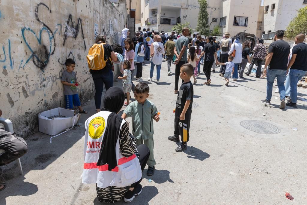 Nous ne pouvons pas garantir la sécurité de nos équipes. Nous ne pouvons garantir la sécurité de personne. Aucun lieu n’est sûr à Gaza car l’armée israélienne tire absolument partout. Elle cible même les camps de réfugiés. La seule chose que nous pouvons faire, c’est leur demander d’être le plus prudents possible. Vous savez, même les journalistes, qui prennent toutes les mesures de sécurité possibles, qui portent des gilets pare-balles, sont pris pour cible et se font tuer. Bien sûr, les membres de PMRS revêtent toutes et tous un gilet blanc. Mais l’armée israélienne ne leur accorde pas de protection, enfreignant par là même les lois internationales qui l’imposent.