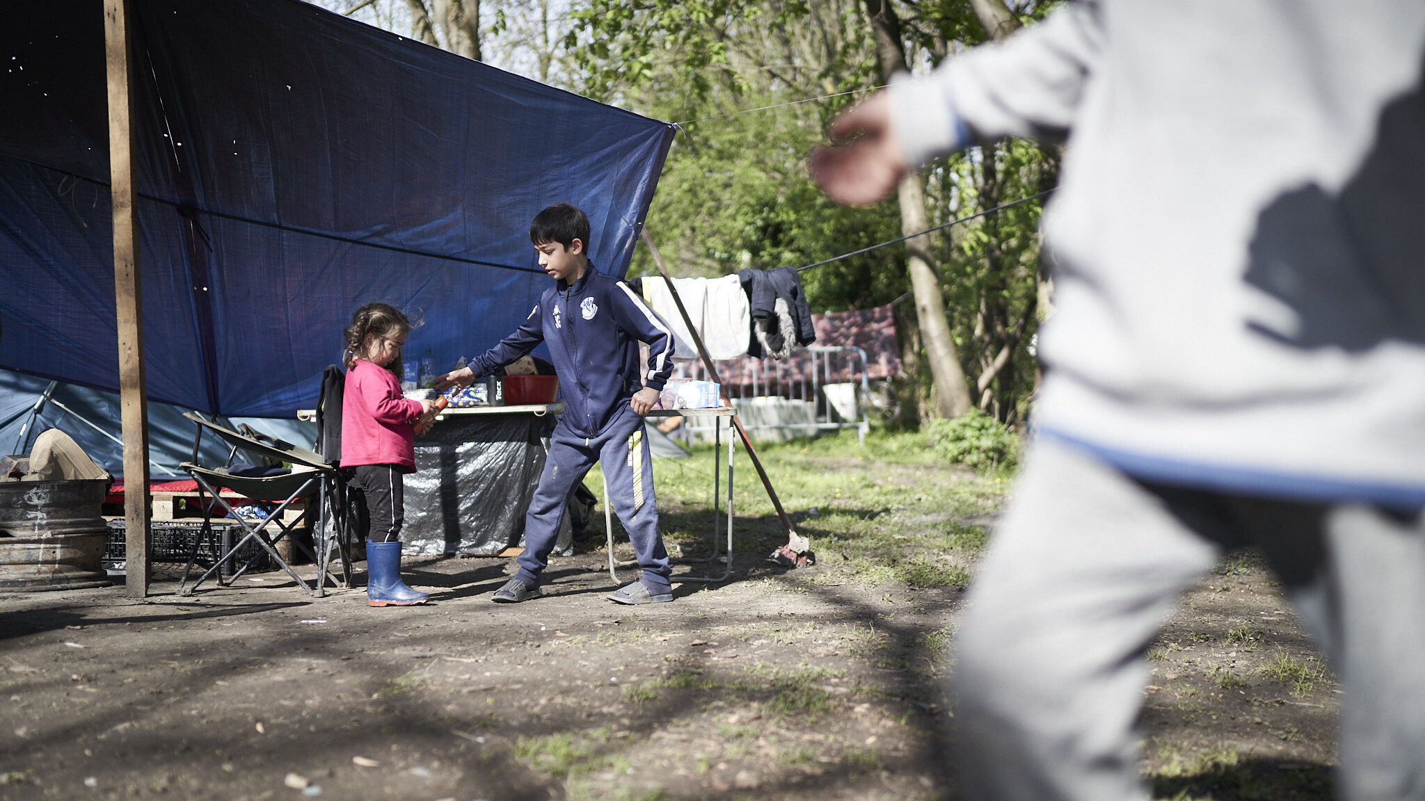 Beso, 13 ans. Ana-Maria, 3 ans. Nikolazi, 8 ans. Tous les trois vivent dans une tente, sur un coin de pelouse à Strasbourg. Il y a en France 3 000 enfants qui vivent à la rue, selon l’Unicef (rapport d’août 2023). Et il y en a toujours plus, comme à Strasbourg. « Nous sommes une ville-frontière, en face de l’Allemagne. Beaucoup de gens se réfugient ici. Ils posent leurs tentes à chaque bretelle d’autoroute ou dans les parcs. Il y a des adultes mais aussi des enfants », explique Claude, membre du secrétariat départemental du Secours populaire du Bas-Rhin.