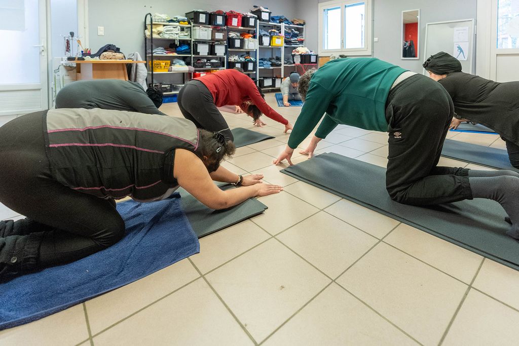 Depuis juin 2023, une quinzaine de femmes aidées par le Secours populaire du Loiret bénéficient de cours de yoga et de gymnastique douce une fois par semaine. Initiés par Liliane, bénévole à l’antenne, et en partenariat avec le CROS (Comité régional olympique et sportif), ces rendez-vous sont attendus et appréciés de toutes. Aïcha, Marie, Nadine, Khera, Jocelyne… sont heureuses de s’y retrouver et de mettre leur quotidien entre parenthèses.