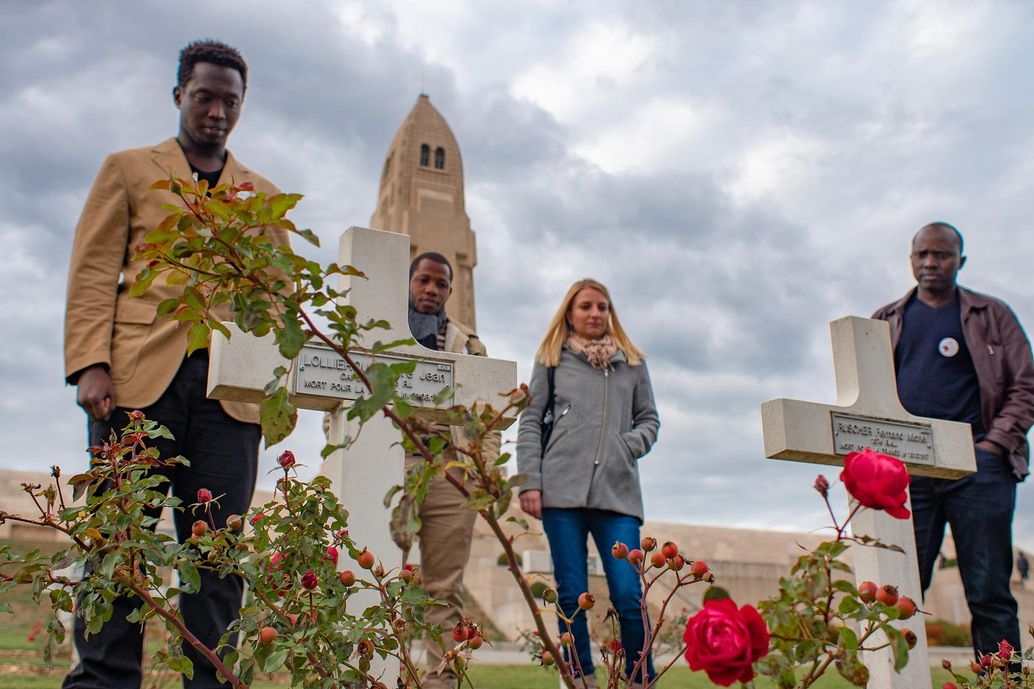 Après cet atelier sur l’Europe, les trente jeunes se sont rendus à Verdun, pour visiter l’Ossuaire de Douaumont. Lieu de mémoire de la bataille de Verdun qui a duré 10 mois. Sur le site, reposent 16 000 soldats tués entre le 21 février et le 18 décembre 1916 ainsi que les restes de 130 000 soldats allemands et français inconnus. Librement, ils visitent le musée et sa nécropole. Devant chaque tombe un rosier est en fleur. Ce qui retient particulièrement leur attention c’est la jeunesse des soldats, beaucoup ont leur âge.Une fois de plus l’histoire personnelle de chacun d’entre eux est à nouveau au cœur des discussions. Victoria, jeune biélorusse de 29 ans se souvient de ce que son grand-père lui racontait sur l’horreur de la seconde guerre mondiale « Il nous parlait de la guerre et de ses atrocités. Il avait tué des hommes et cela le hantait encore bien des années après. À la fin de sa vie il était devenu un homme de paix »Face à elle, Joseph, venu du Rwanda et bénévole au SPF lui explique que son pays a aussi connu un terrible conflit ethnique entre 1990 et 1994 qui a fait des milliers de morts.
