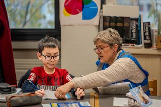 Dans un coin, Laurence demande à Wilsha, 10 ans, s’il veut commencer par la leçon d’orthographe. Assis les bras croisés, avec un petit sourire espiègle et des yeux malicieux derrière ses lunettes rondes, le petit garçon asiatique acquiesce. Il sait qu’il en a besoin, un mois après sa rentrée en CM2. Dans un coin, Gérard et Issa, un ado de 16 ans, se sont lancés dans les fractions au tableau. « Alors, ça s’est passé comment cette semaine ? », demande le bénévole qui donne des cours depuis 3 ans parce qu’il avait « envie de faire ça depuis longtemps » et que le contact avec les jeunes lui « apporte aussi beaucoup ». A quelques mètres de là, le petit frère d’Issa, Mohamed, qui est en section internationale, revoit ses leçons d’histoire, en anglais, avec Catherine.